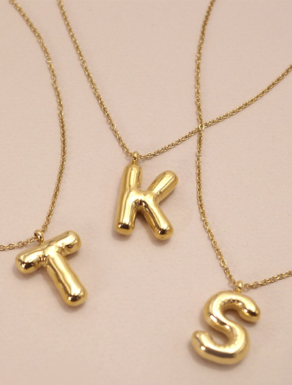Product Details: Material: High-quality stainless steel with 18K gold dip, Finish: Tarnish-free, lead & nickel compliant, Length: 18" chain + 3" extender, Charm Size: Approx. 0.70" x 0.60", Clasp: Lobster claw and Style: Balloon letter pendant — bold, bubbly, and oh-so-you