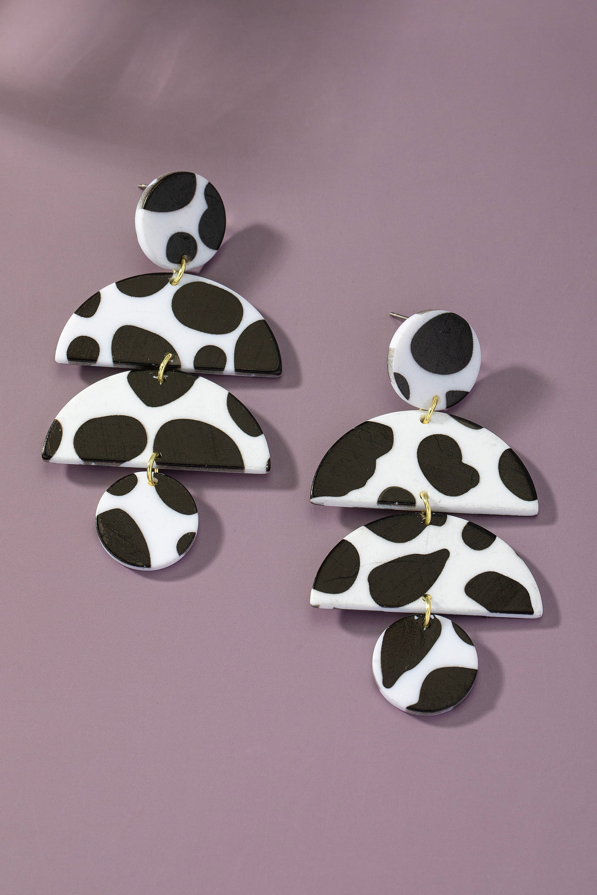 Turn heads and steal the spotlight with the Gallery Statement Earrings — where bold design meets modern artistry. These striking double-sided drop earrings combine circular and half-circle shapes, showcasing a vibrant animal print that adds just the right amount of edge to your ensemble.