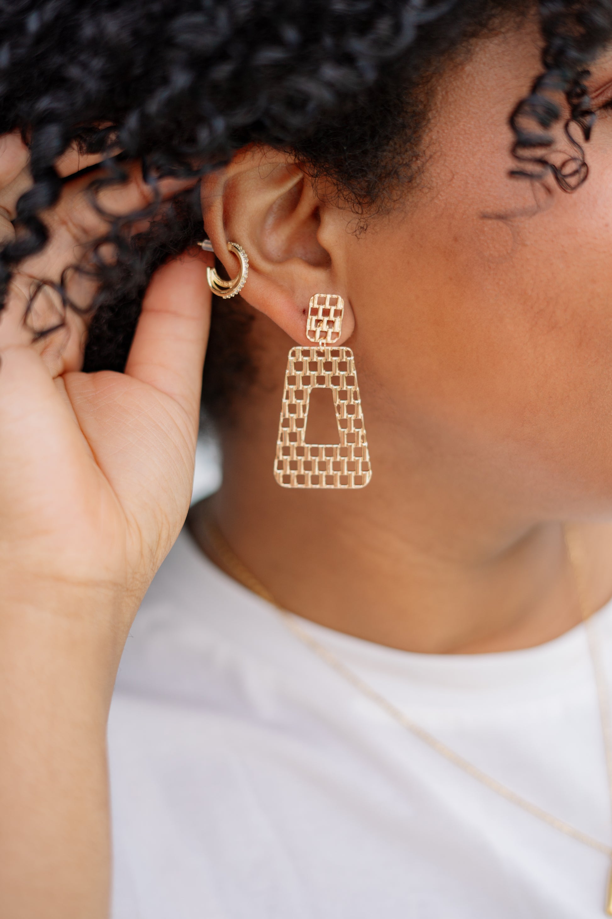 Turn heads and spark conversations with the FABULA Let’s Link Up Earrings — a fresh take on modern glam. These lightweight statement-makers feature a linked trapezoid design with an open grid texture that gives off serious “cool girl” energy.