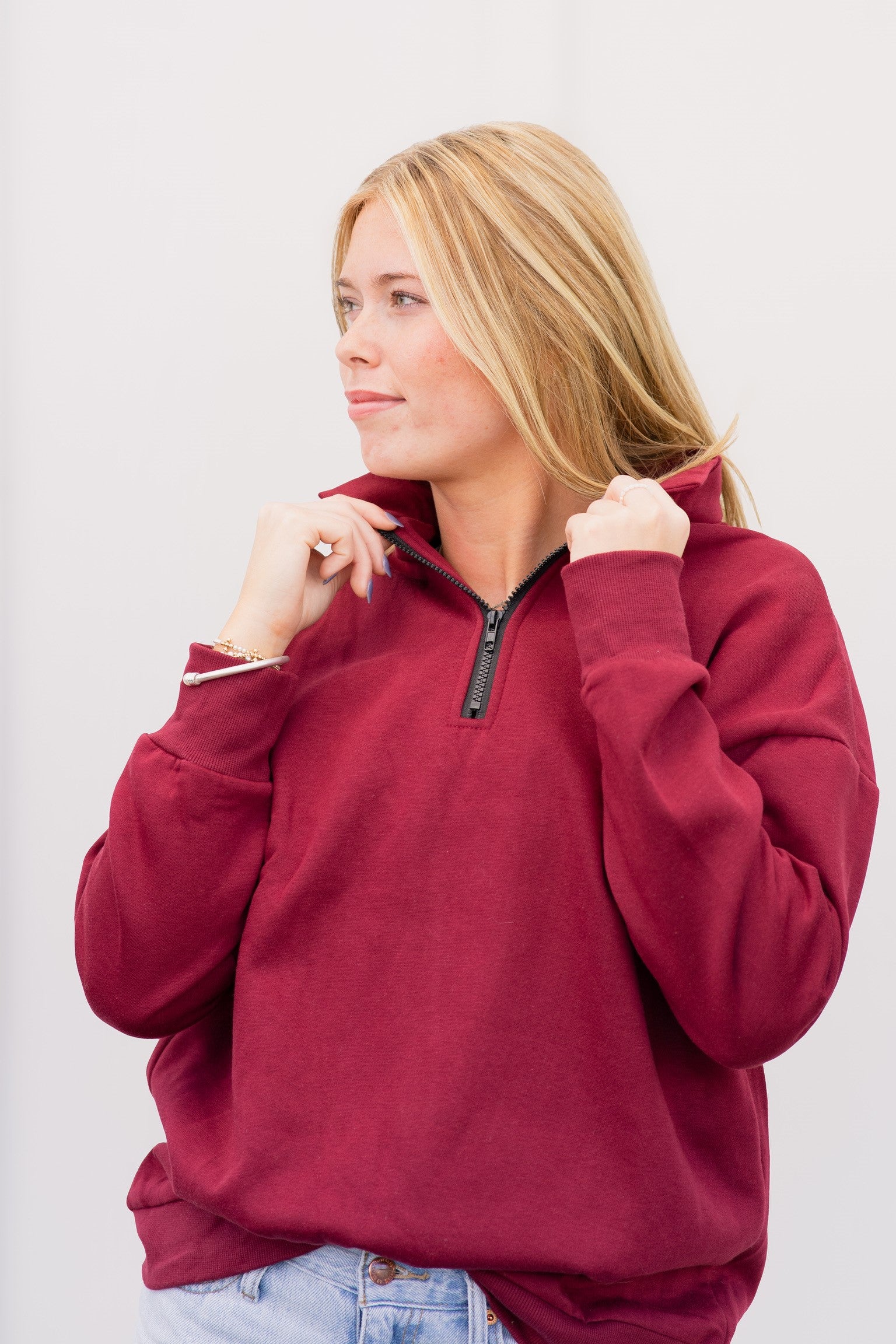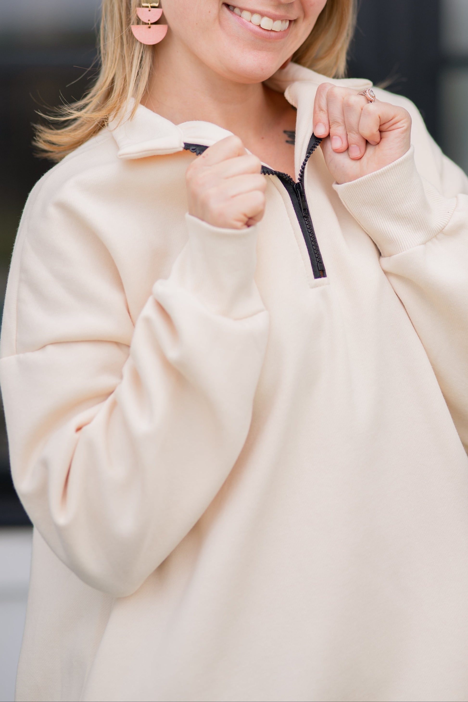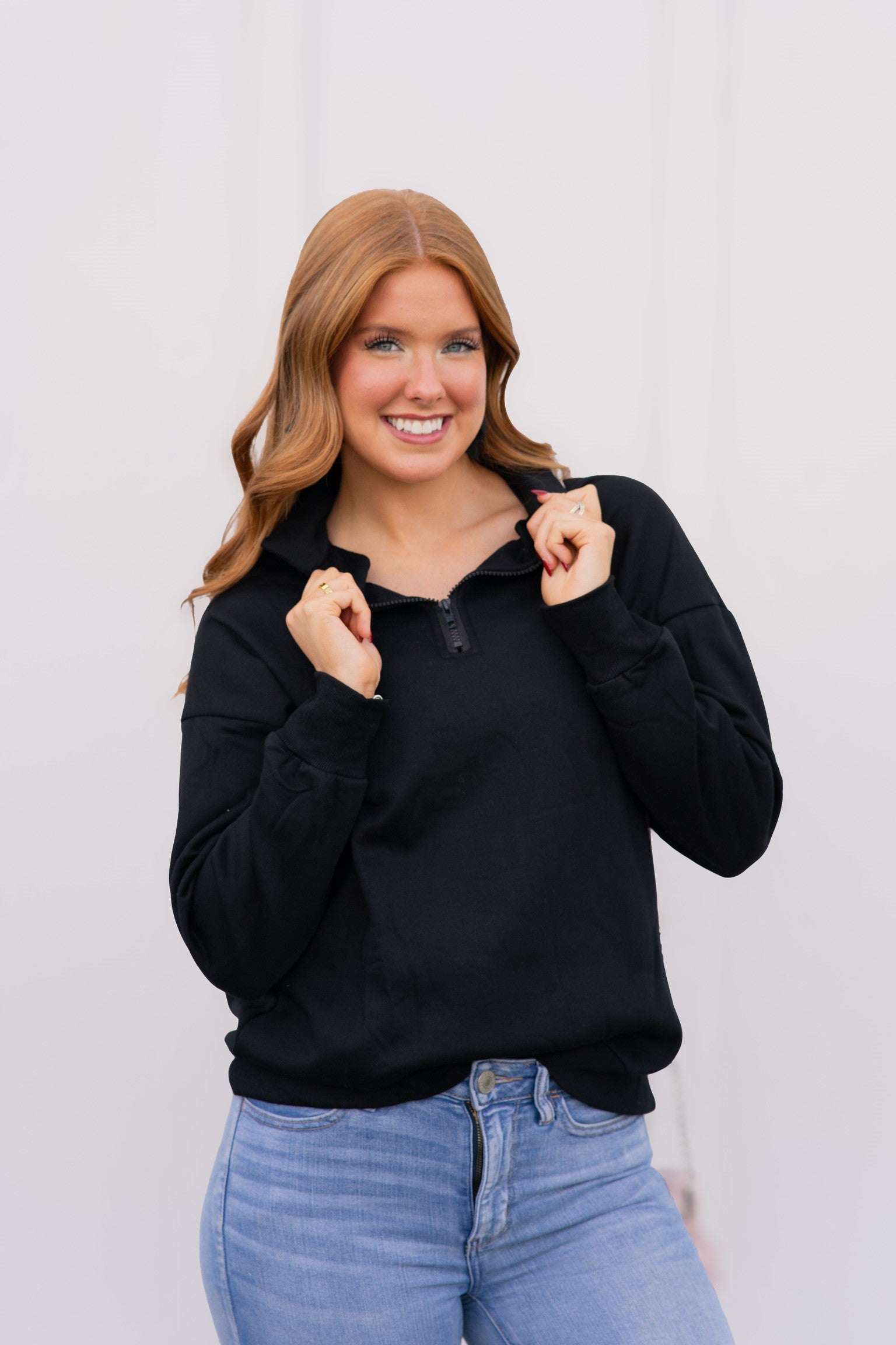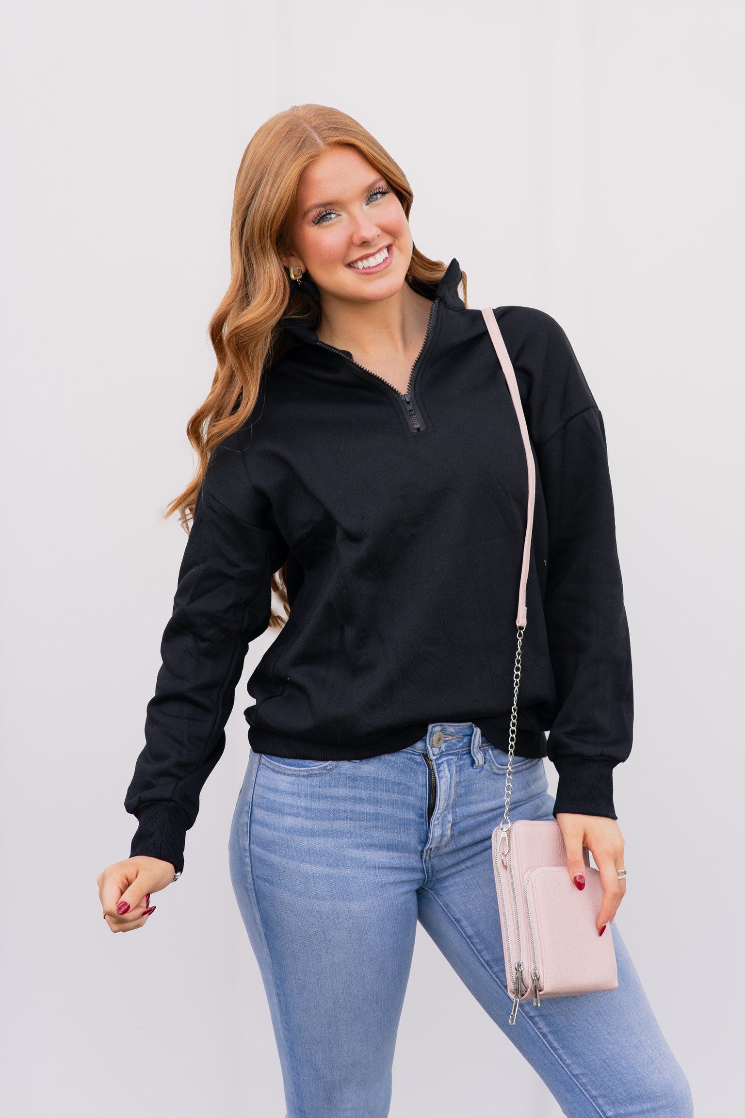 Pop it on & go, girl! 🚀💖 The Pop & Go Quarter Zip is your new go-to for literally everything! Running errands? Check. Cozy couch time? Oh yeah. Cheering at the big game? You bet. Power shopping spree? Obviously. Comfy walk on the beach? Yes, please!